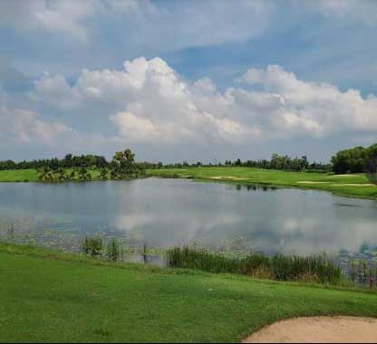ロイヤル・バンパイン・ゴルフクラブはアユタヤ放免にある2016年にオープンしたばかりのゴルフ場。18ホールパー72の池が随所にあり、フラットながら自然の地形を生かして戦略性に富んだレイアウトが特徴です。アンジュレーションのあるフェアウエイ、多く池とバンカー、ウォーターハザードで挑戦心を擽り、視覚的なプレッシャーを与えられないゴルフ場です。グリーン上でのボールの転がりも秀逸だが、このコースの特徴は優れたデザインのクラブハウス、ロッカールームなども広く、清潔で使いやすいです。レストランのタイ料理も美味しく、工業団地に近い為、日本語メニューも用意しています。