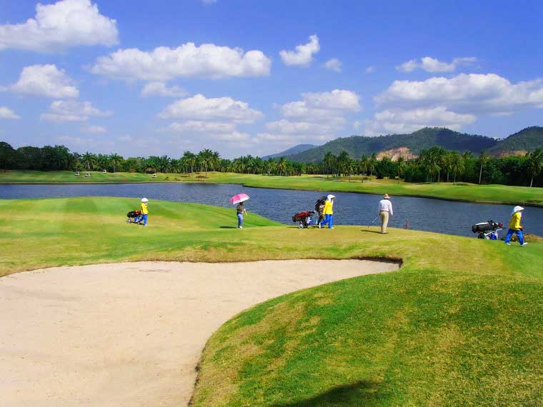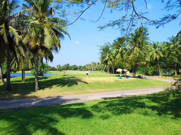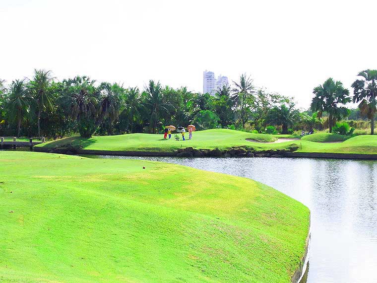 マウテンシャドーゴルフクラブはパタヤ方面にある27ホールのゴルフコース。このゴルフ場の特徴は数多く植樹され、やしの木に囲まれたリゾート気分を盛り上げる景観の美しいコース。 全体的にフラットだが、若干うねりのある広大なフェアウェイと丘陵アップダウンがあり、ハザードと池がしっかり絡んでいる。 グリーンはアンジュレーションがあり、遅めだが、戦略性が高い。日本人会社の設計で自然と日本人が好むレイアウトになってバーディチャンスも多いでしょう?。初心者や女性ゴルファーにも優しいコース。