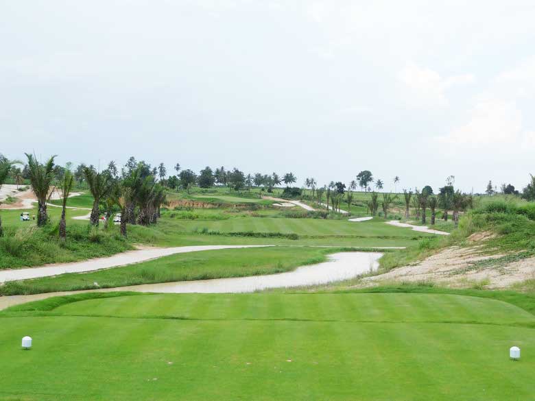 ハーメスゴルフクラブはパタヤ近郊にある18ホールのゴルフ場です。バンコク市内より約2時間半の距離があり、当コースからパタヤ市内までは40分前後の移動時間です。セントアンドリュースとシルキーオークというゴルフ場と一緒の土地に併設されています。丘陵地を利用し、勾配の強い難易度を持っているコースです。バンコク近郊のグリーンバレーというゴルフ場もあり、全く関係がありませんね。違うオーナーでした。なのでゴルフ場のデザインも難しさも同じだと思ったら、不注意のショットで打って痛い目に当たってしまうゴルファーが多かったのです。ラヨーングリーンバレーの設計者はパタヤのグリーンウッドというゴルフ場と同じく、全英オープン5回優勝のピータートムソンです。全体的には広めのフェアウェイがあり、池は少なく、初級者でも楽しめるまぁまぁ難しいコースです。ハイライトホールはあの8番ホールのパー3です。バンカーに囲まれた砲台グリーン、右側に大きな池もありながら、プレッシャーを感じさせられます。池が今までないと思ったら、突然池が絡むと、気にしてしまいますね。ラヨーングリーンバレイ、セントアンドリュース、シルキーオークの3コースとも難度や雰囲気が異なりますので3日間同じところでプレイしても飽きはないし、毎日違うルートで移動の疲れもないでしょうか&